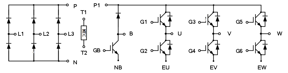 SP25R12G6采用59白菜专区论坛网页版G类封装,具体封装外形及内部电路拓扑如下图所示,设计指标对标国外某I公司第四代产品。